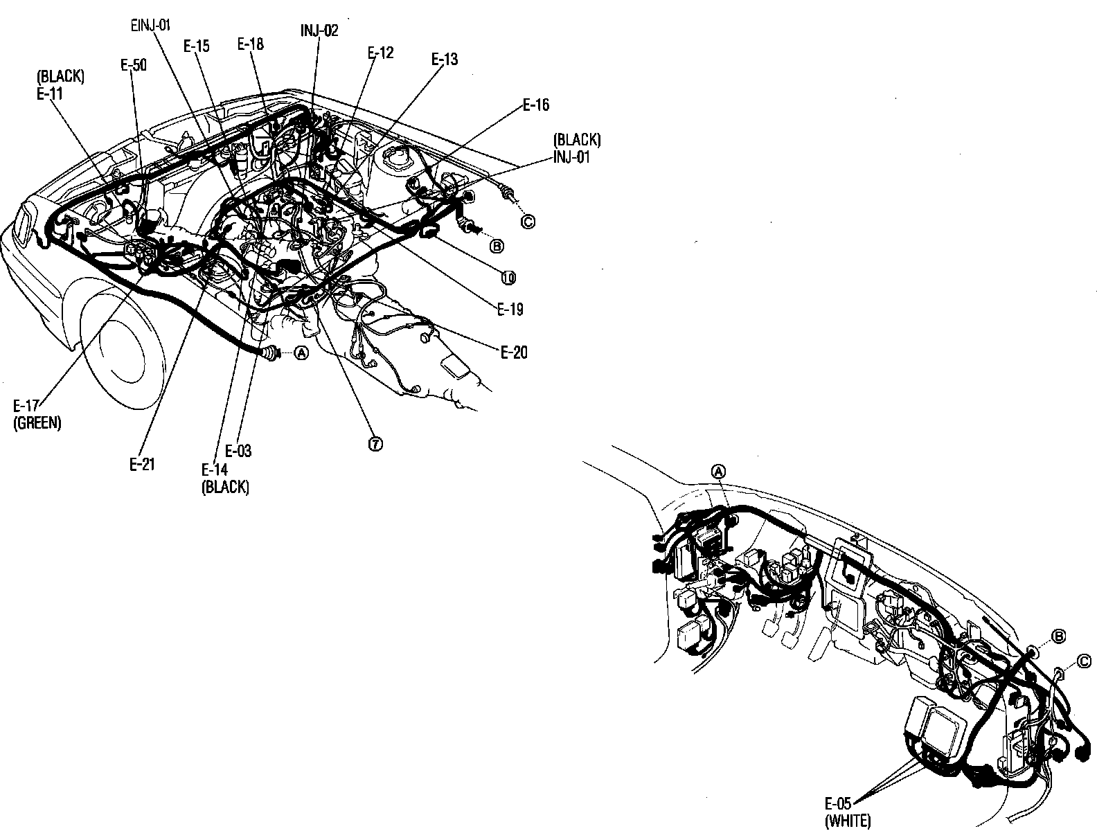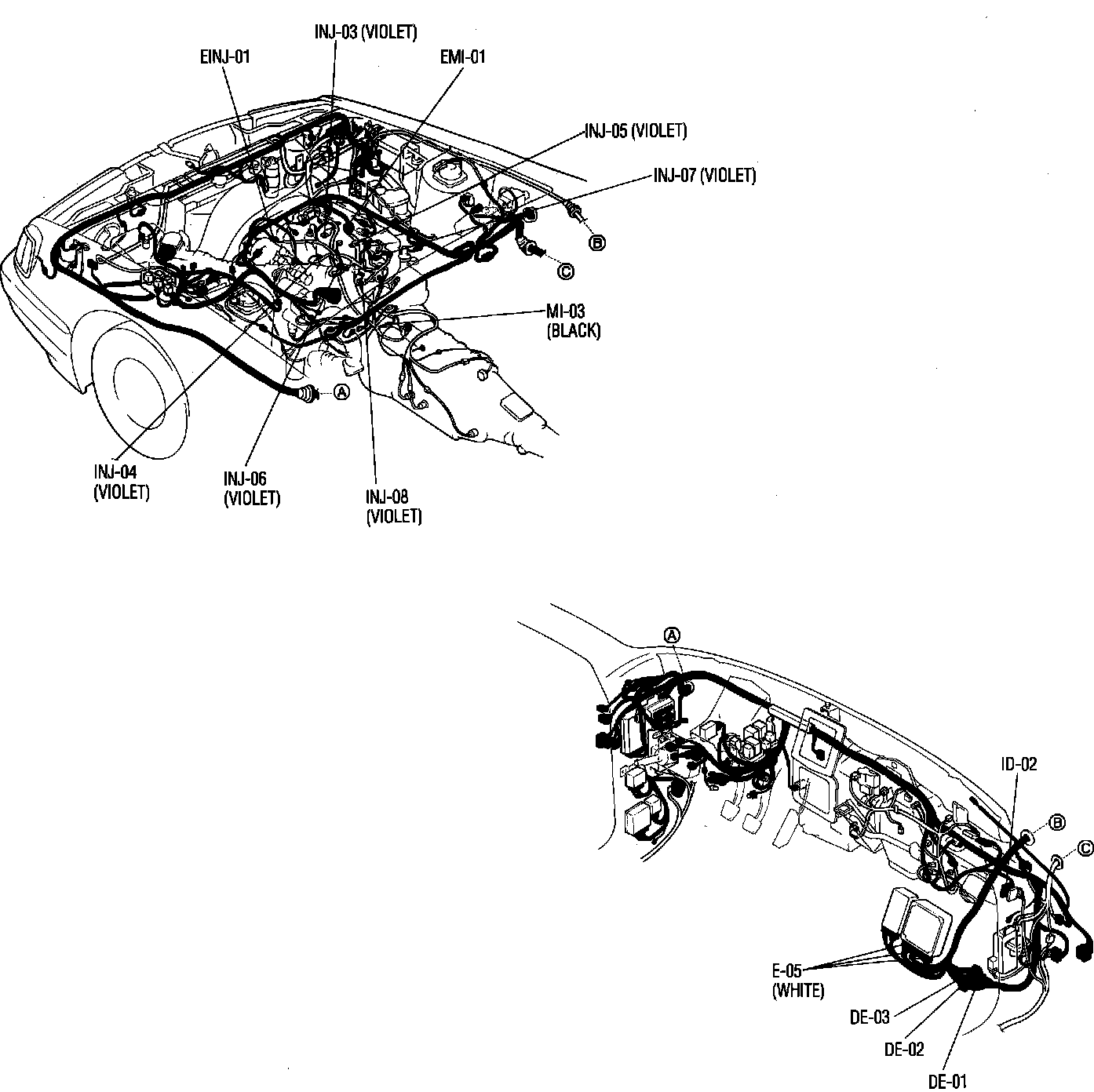 Ignition & Engine Control System. SOHC Engine. Harness Locations: