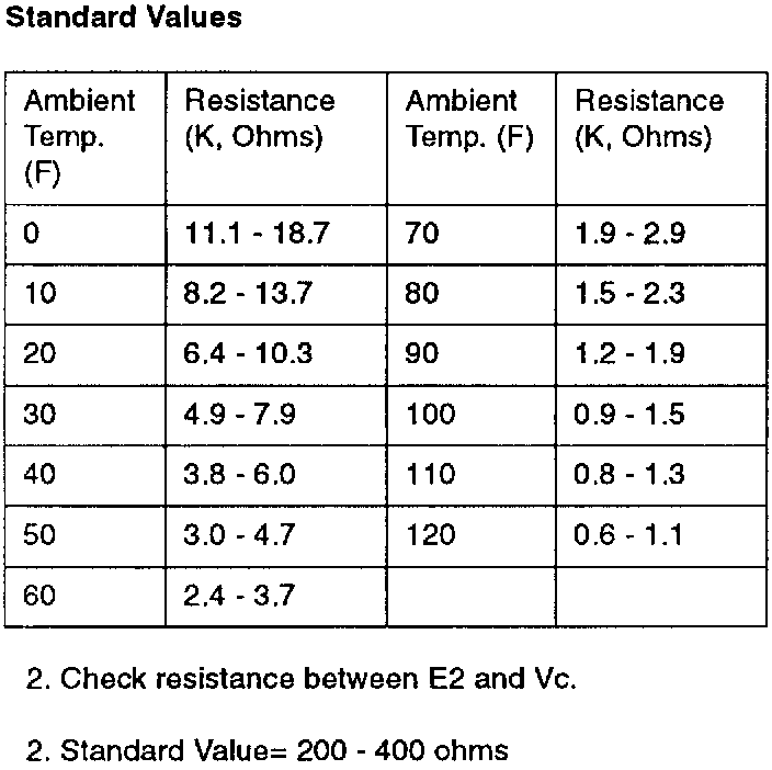 Refer to the illustration shown and the "Standard Values" table shown when measuring resistance.