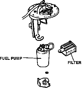The fuel pump, located in the fuel tank, is a high pressure (64 - 85 psi/441 - 589 kPa) positive displacement electric pump. It is designed to supply more than the maximum required amount of fuel at slightly higher than required pressure. This is to insure adequate fuel supply and pressure, while fuel circulates constantly through the system and back to the tank.