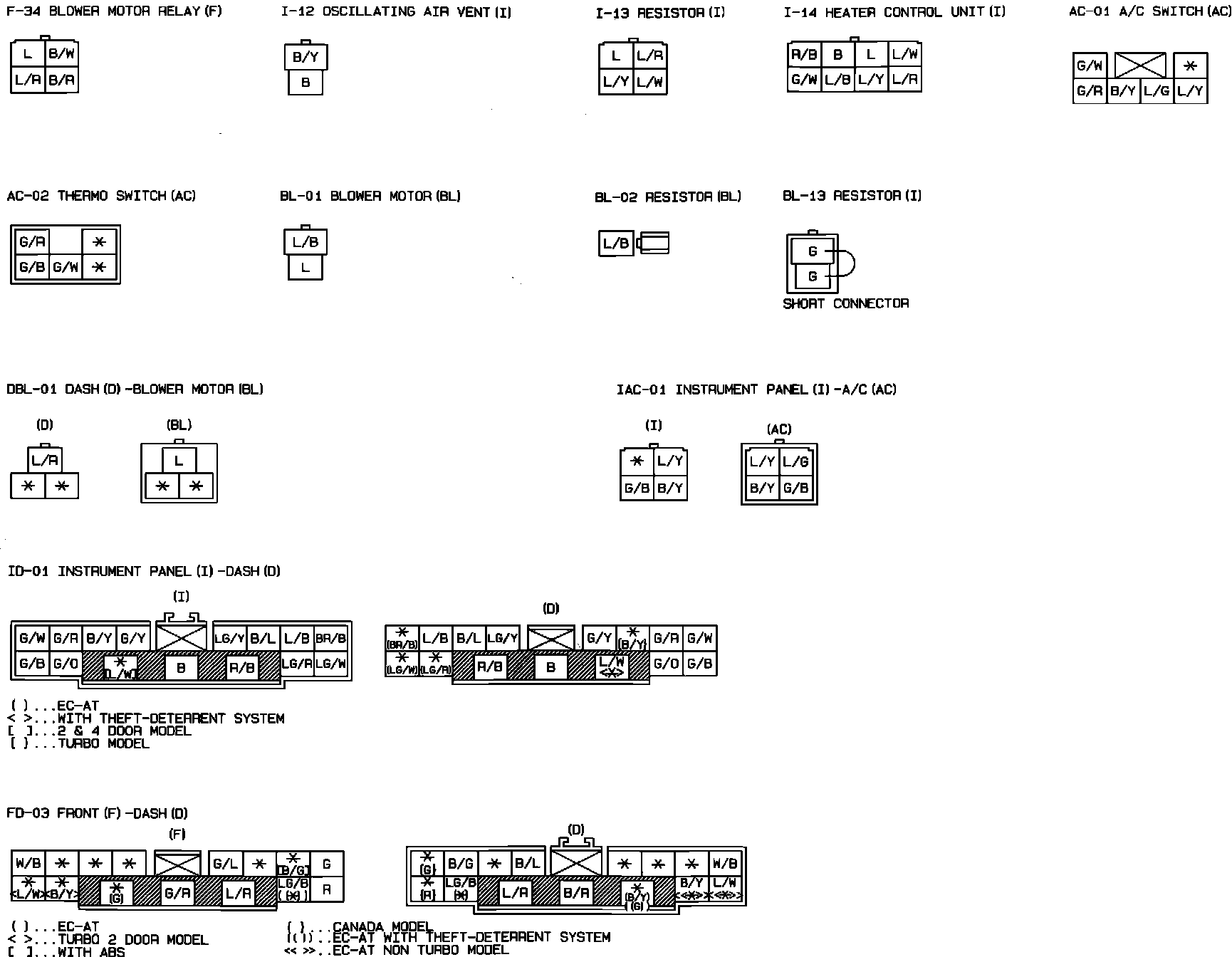 Heater & Air Conditioning. Without Logical Mode Control. Connector Identification: