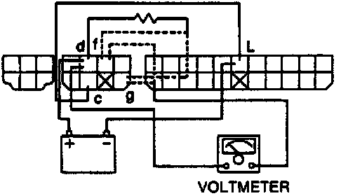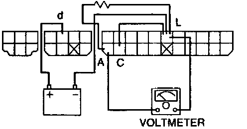 2. Connect a jumper wire between C terminal and L terminal. Connect a resistance (at least 1 kOhm) between A terminal and L terminal, and check the voltage between these terminals using a voltmeter.