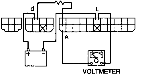 4. Connect a resistance (at least 1 kOhm) between d terminal and A terminal, and check the voltage between A terminal and L terminal using a voltmeter.