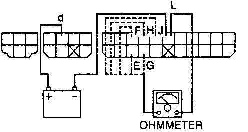 5. Check for continuity between terminals in following positions with an ohmmeter.