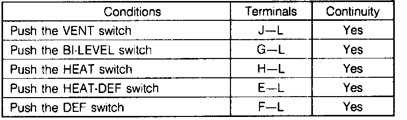 4. Check for continuity between P terminal and L terminal with the REC-FRESH air selector switch in REC position (in) using ohmmeter.
