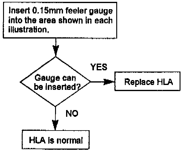 A primary cause of HLA noise is the result of oil draining back to the crankcase during long periods of storage. Category B of the applicable workshop manual contains diagnostic information to determine if the HLA is normal or requires replacement. Instructions in the manual will be revised in the 1996 manual.