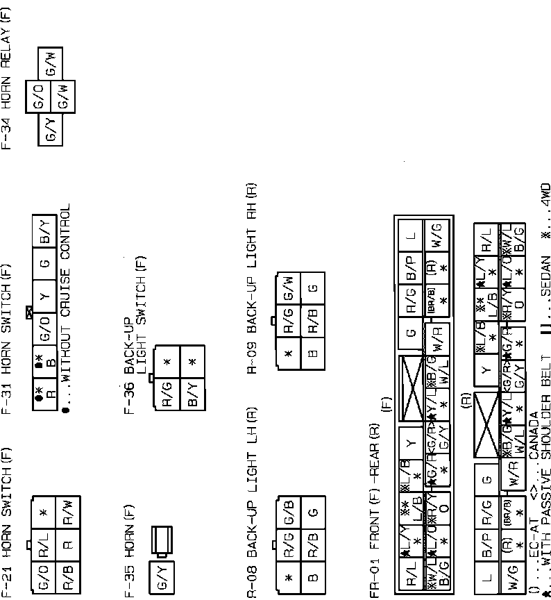 Horn & Back-Up Lights. Except 4WD. Connector Identification:
