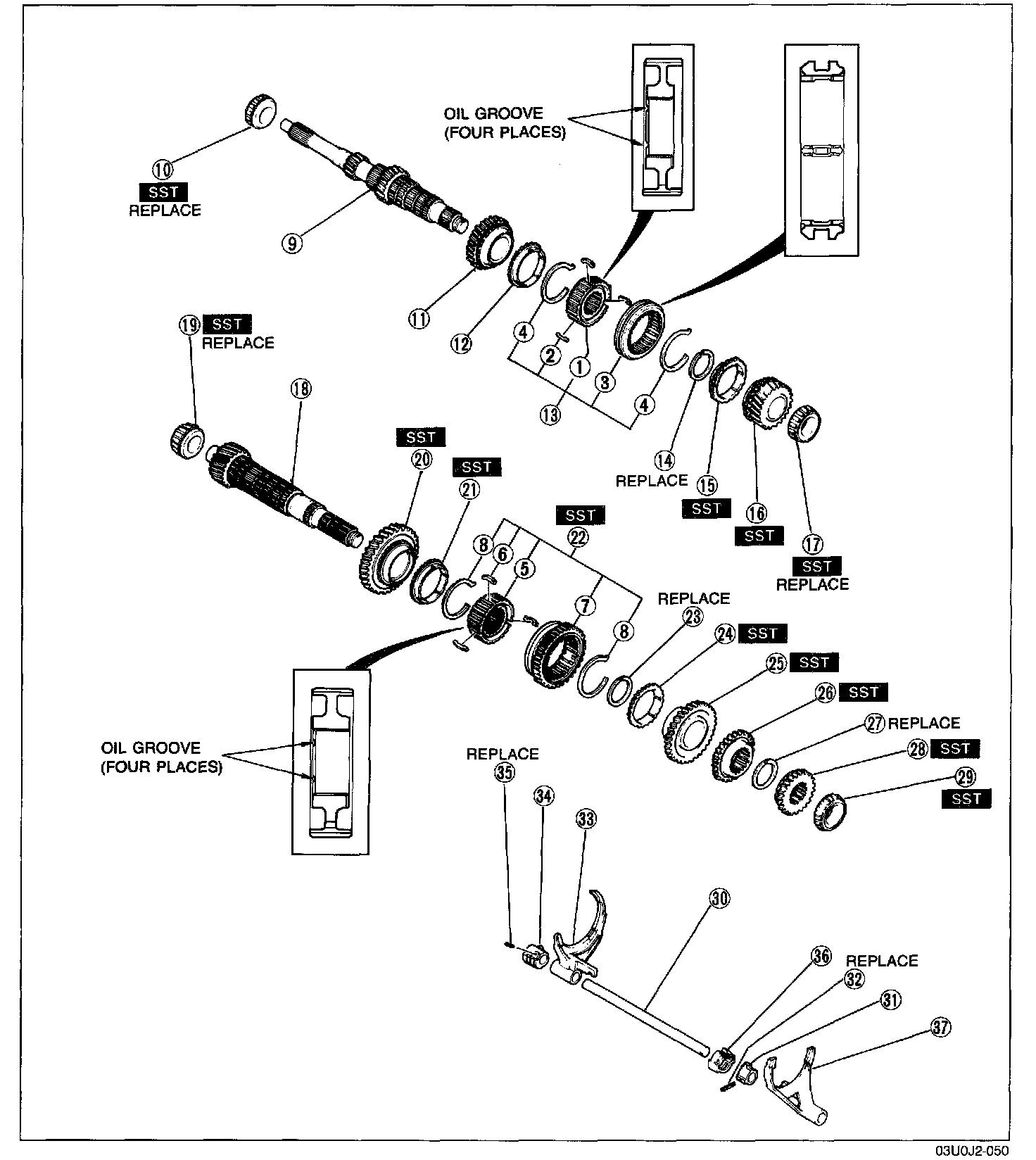 2. Install the new oil seals with the SST.