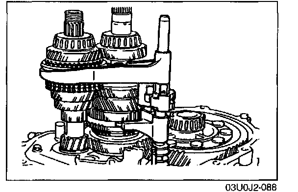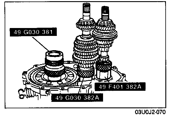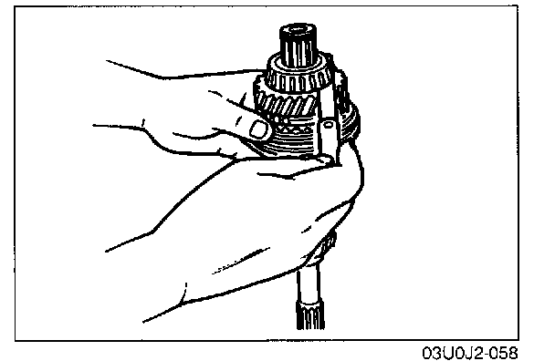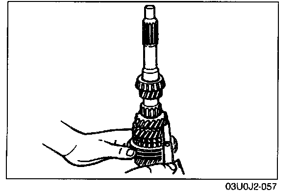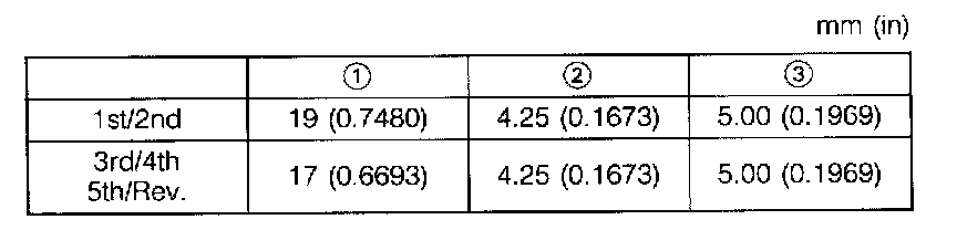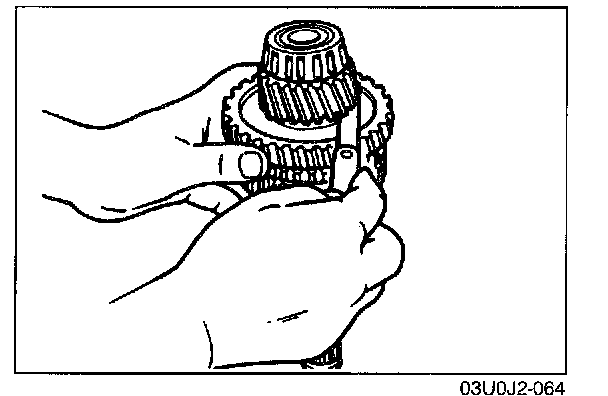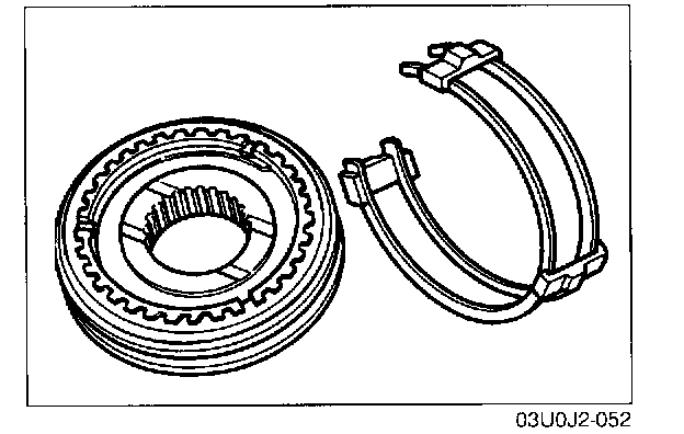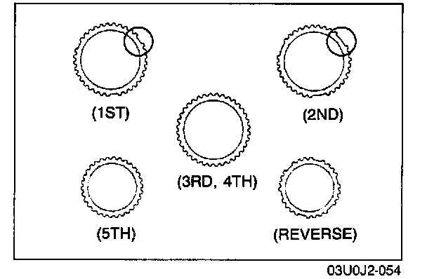 - The size of the 1st, 2nd, 3rd, and 4th synchronizer rings are the same. Be careful when installing them. The 2nd ring has the larger cut-out as shown in the illustration.