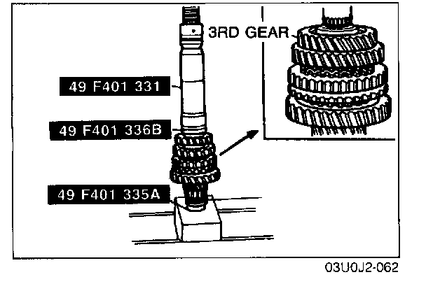 3. Measure the clearance between the 2nd gear and secondary 3rd gear.