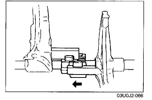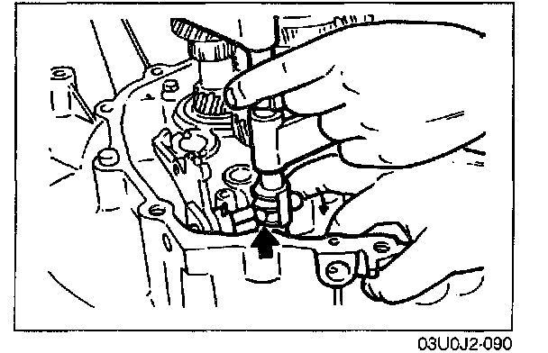 4. Set each clutch hub sleeve to the neutral position, and tap the shift rod from above so that the steel ball goes into the center groove (of the 3 grooves in the control end).
