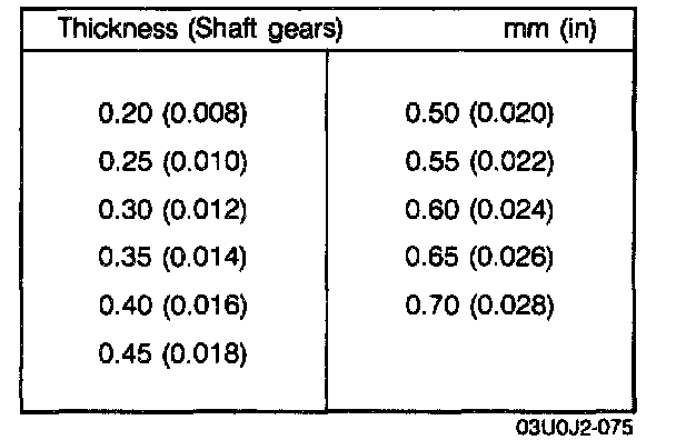 14. Add 0.15 mm (0.0059 in.) to the measured clearance and select the combination of shims closest in value to that measurement.