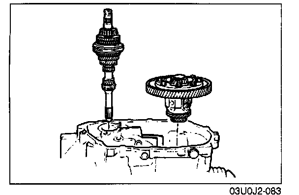 1. Set the primary shaft gear and the differential into the clutch housing.