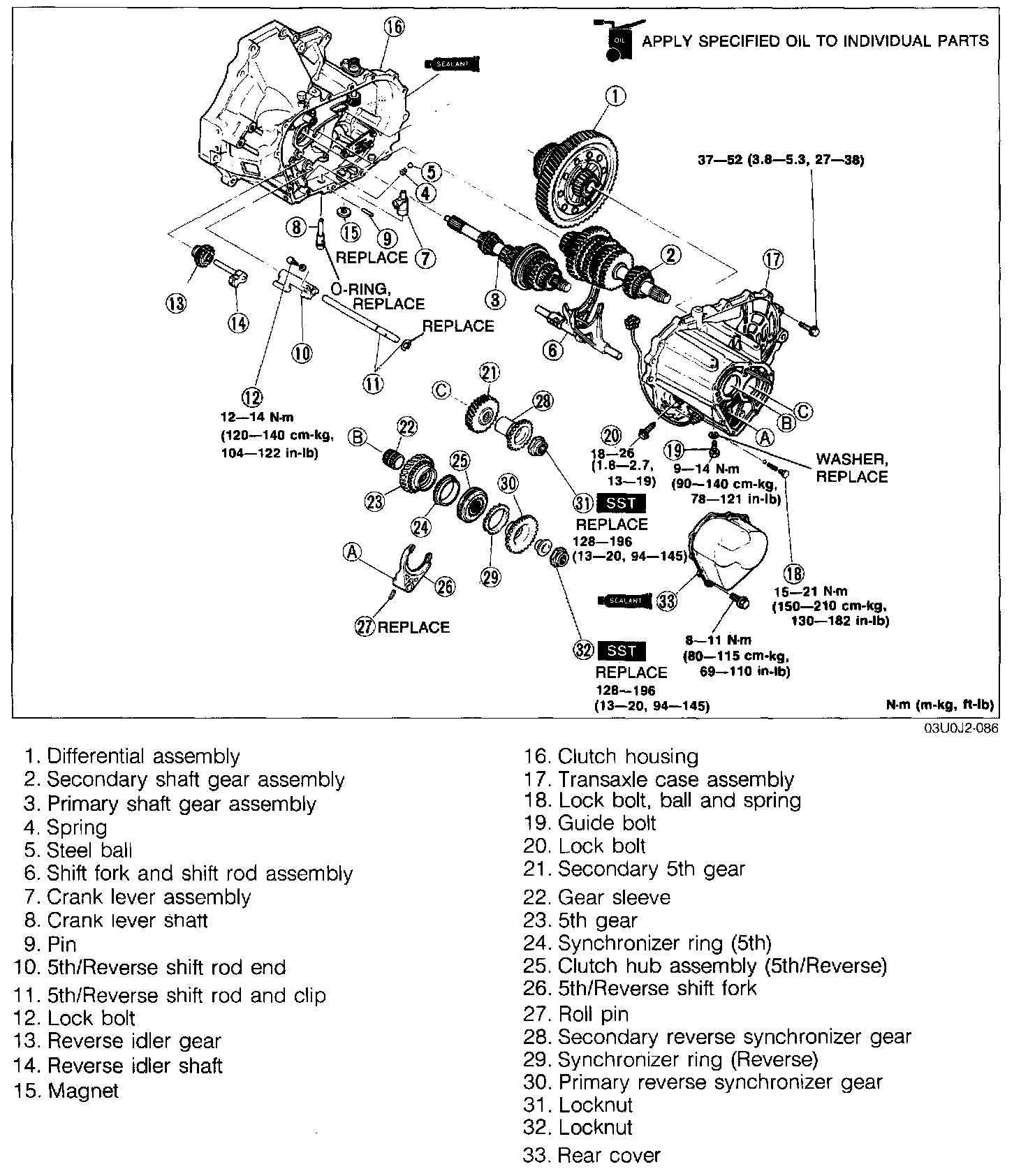 4. Assemble the parts within 10 minutes after applying sealant. Allow all sealant to cure at least 30 minutes after assembly before filling the transaxle with transaxle oil.