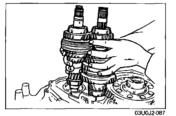 1. Install the primary shaft gear assembly and the secondary shaft gear assembly together.