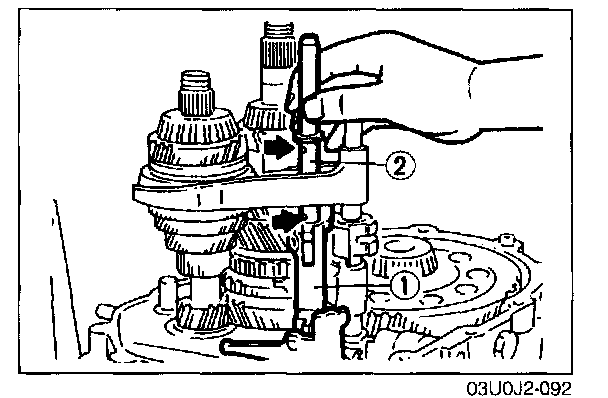 2. Measure the clearance between the 1st gear and differential drive gear.