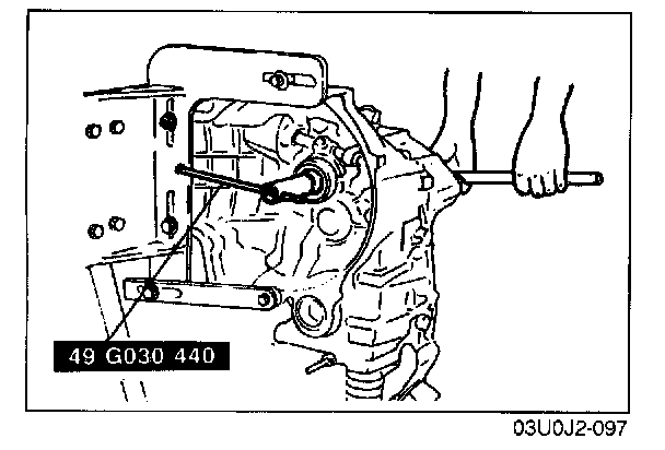 8. Remove the SST, transaxle case, primary shaft gear and differential.