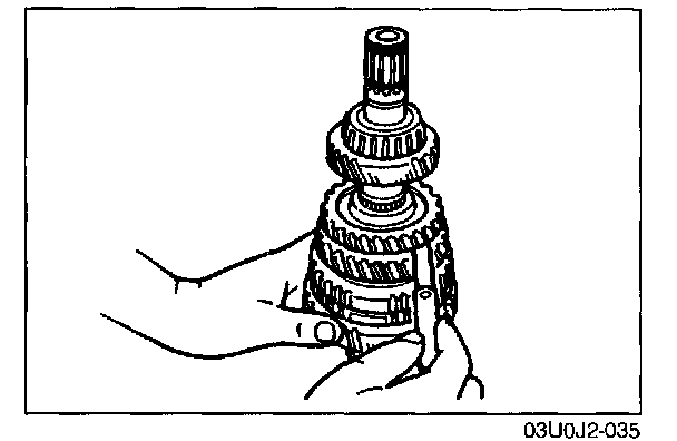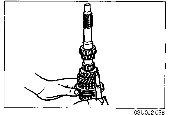 2. Remove the clutch hub assembly (1st/2nd), synchronizer ring (1st), and 1st gear with a press.