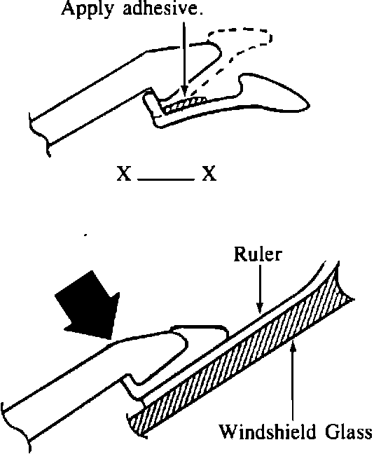 2. Slide a ruler between the protector and the windshield (this will equalize the pressure applied to the seal). Then gently press the edge of the cowl grill until the adhesive dries.