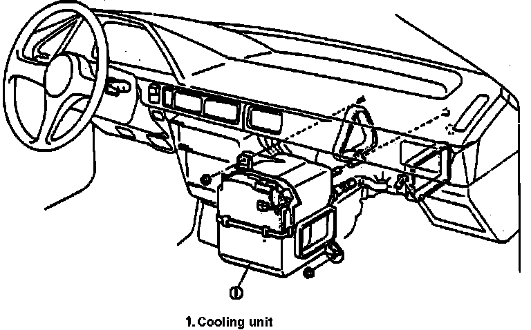 1. Disconnect battery ground cable, then discharge refrigerant from A/C system.