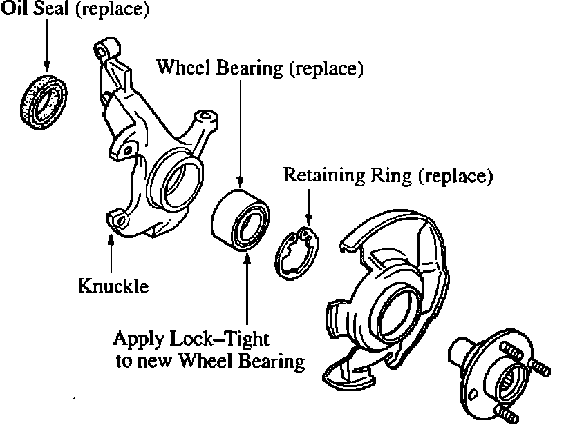 If you encounter a customer complaint about this noise, remove the wheel bearing from the knuckle, and install a new one with lock-tight applied to the outer race.