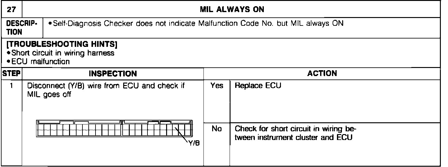 Malfunction Indicator Lamp (MIL) Always on