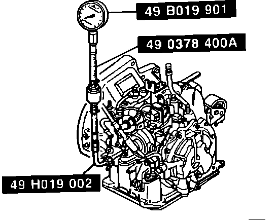 1. Remove the square head plug L (line pressure port) and install the SST (oil pressure gauge set).
