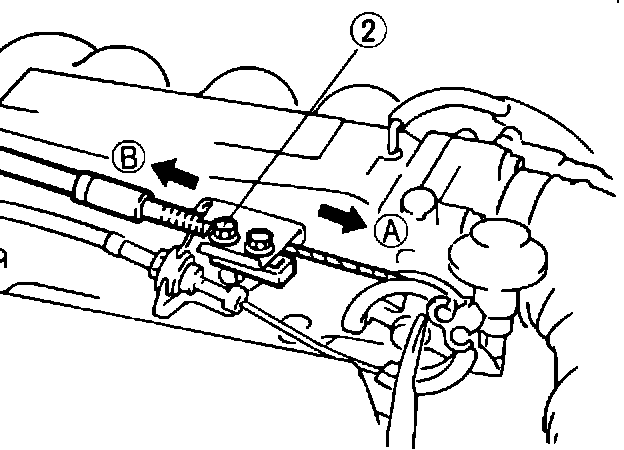 7. Push the cable in the direction of arrow (A) until the line pressure decreases to the adjustment pressure.