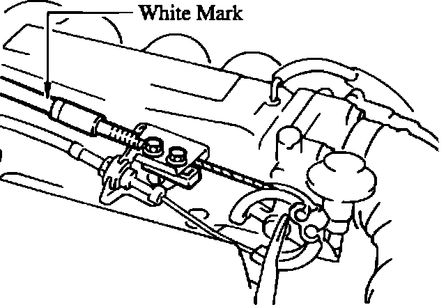 14. After completing the adjustment, put a small white paint mark on the throttle cable housing as shown in the illustration.