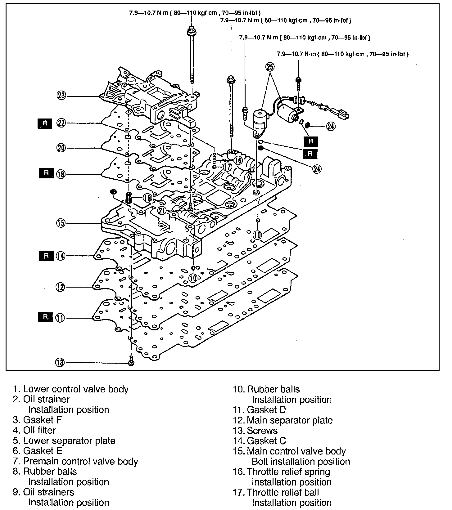 7.9 - 10.7 Nm (80 - 110 kgf-cm, 70 - 95.4 in-lbf)