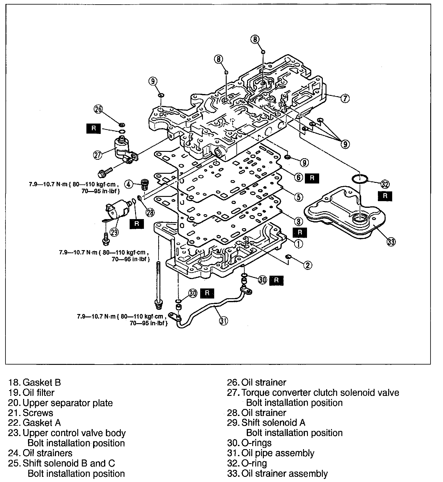 19. Install the oil strainer and torque converter clutch solenoid valve.