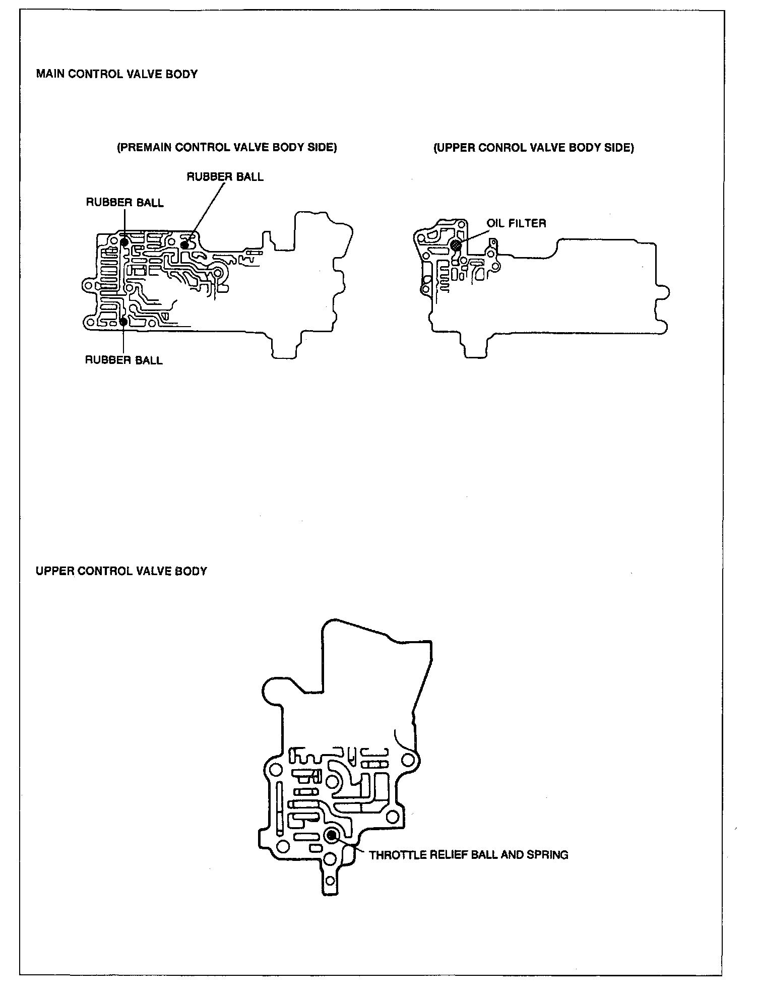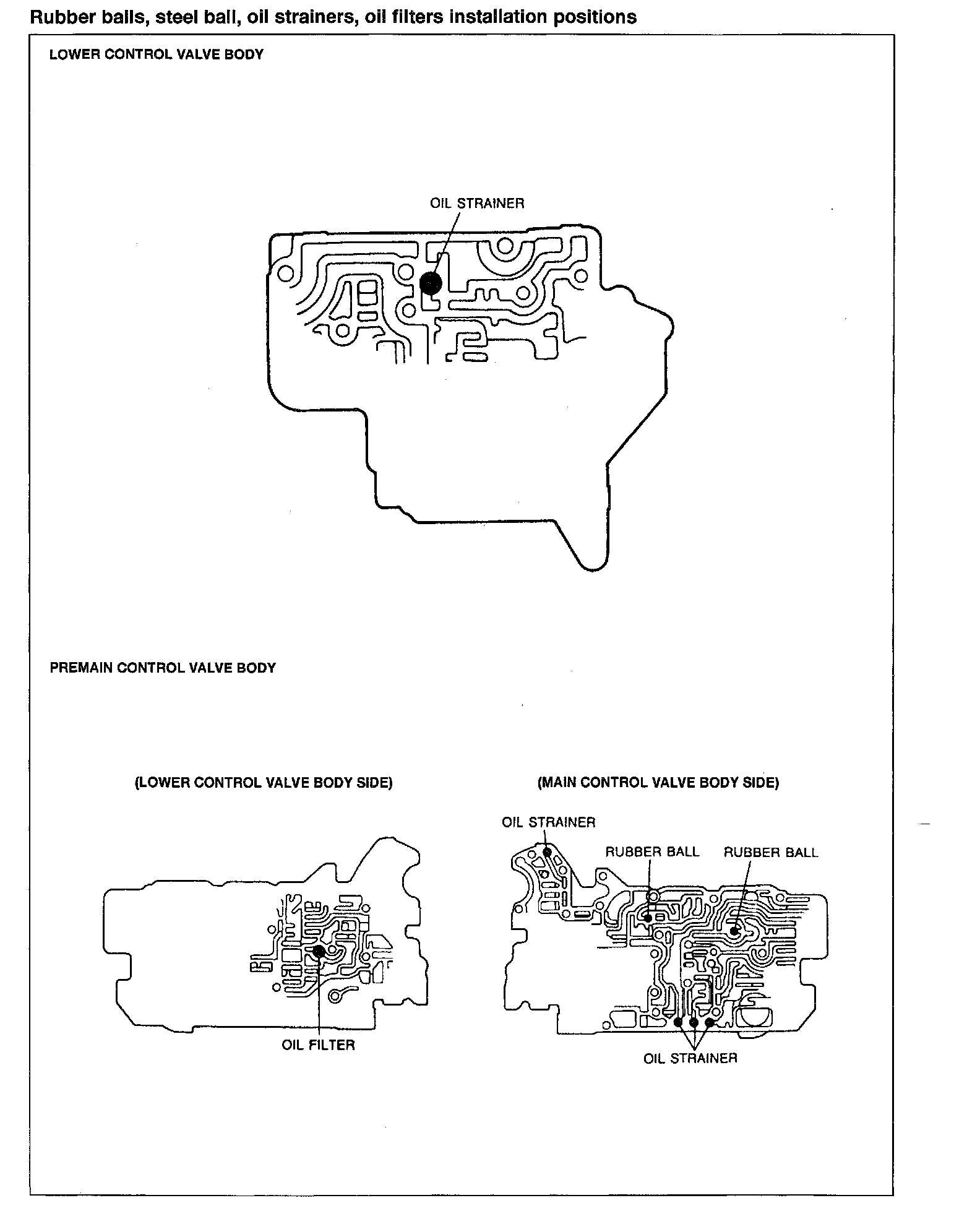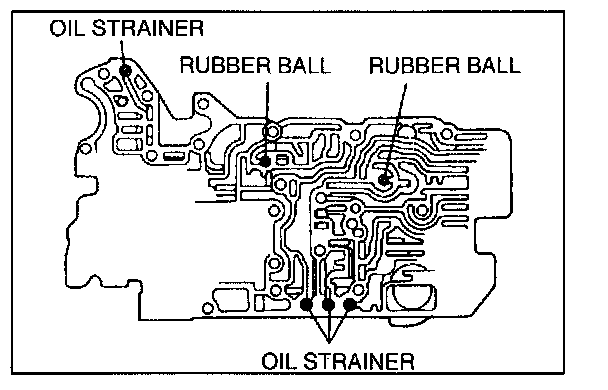 5. Install the rubber balls and oil strainers into their proper positions in the premain control valve body.
