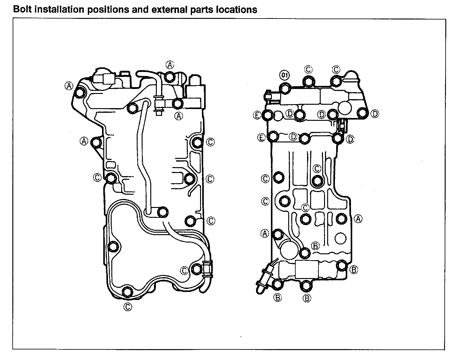 Bolt installation positions and external parts locations