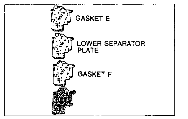 3. Set a new gasket F, lower separator plate, and new gasket E onto the lower valve body.