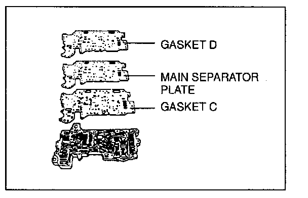 7. Set a new gasket C, main separator plate, and new gasket D onto the main control valve body.