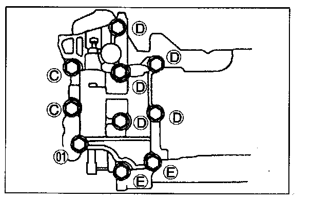 Note: Tighten the bolts evenly and gradually.