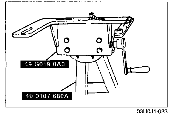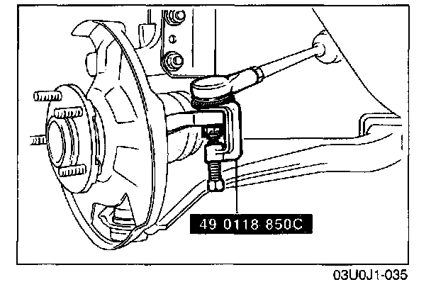 4. Remove the clinch bolt and pull the lower arm downward. Separate the knuckle from the lower arm ball joint.