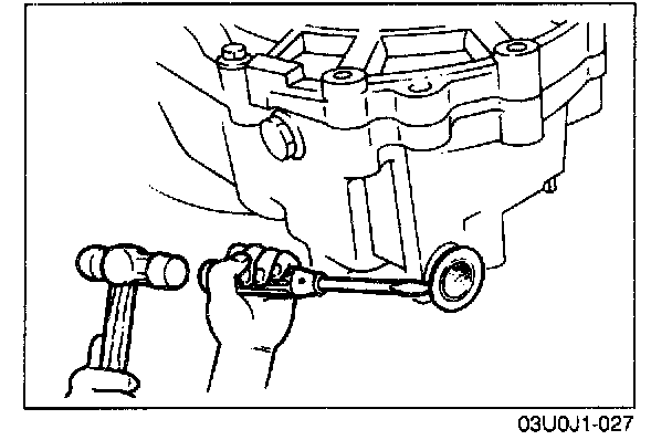 Jack up the vehicle and support it with safety stands. Drain the transaxle oil. Next, use the following procedure to replace the driveshaft oil seal: