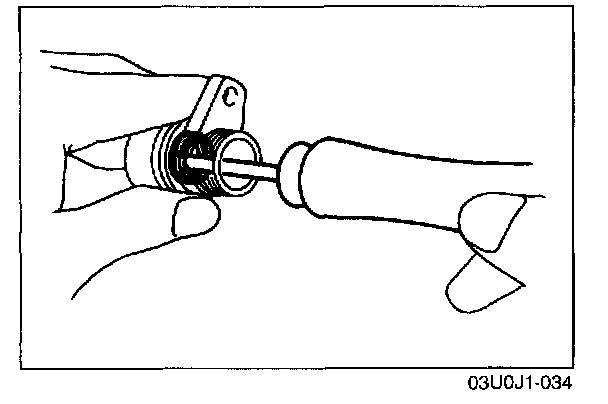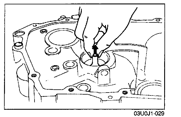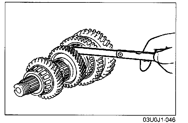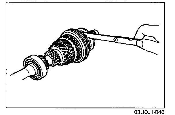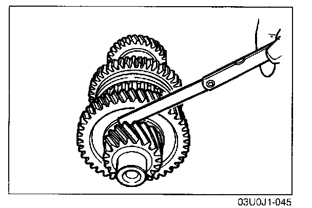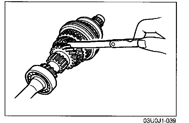 2. If the clearance exceeds the the maximum, check the contact surfaces of 5th gear and the clutch hub. Replace worn or damaged parts.
