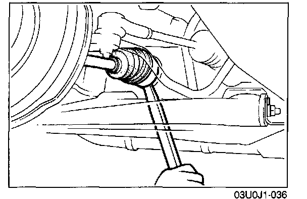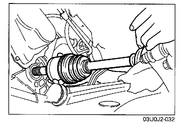 6. Disconnect the driveshaft from the transaxle by prying with a bar inserted between the outer ring and the transaxle.