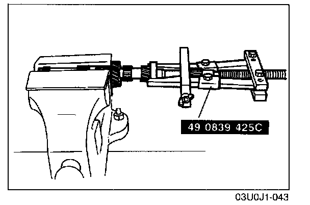 1. Remove the bearing inner race and secondary 4th gear with the SST.