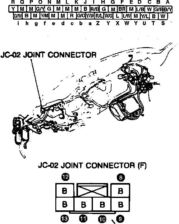 Fig. 43 JC-02 Joint Connector Location & Terminal Identification.: