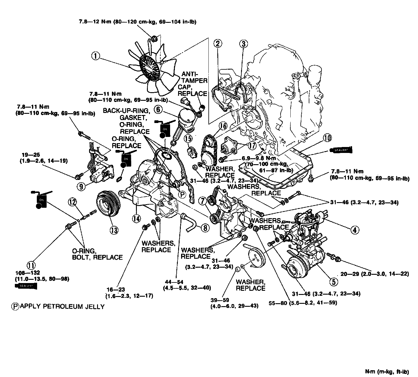 16-23 Nm (1.6-2.3 m-kg, 12-17 ft-lb)