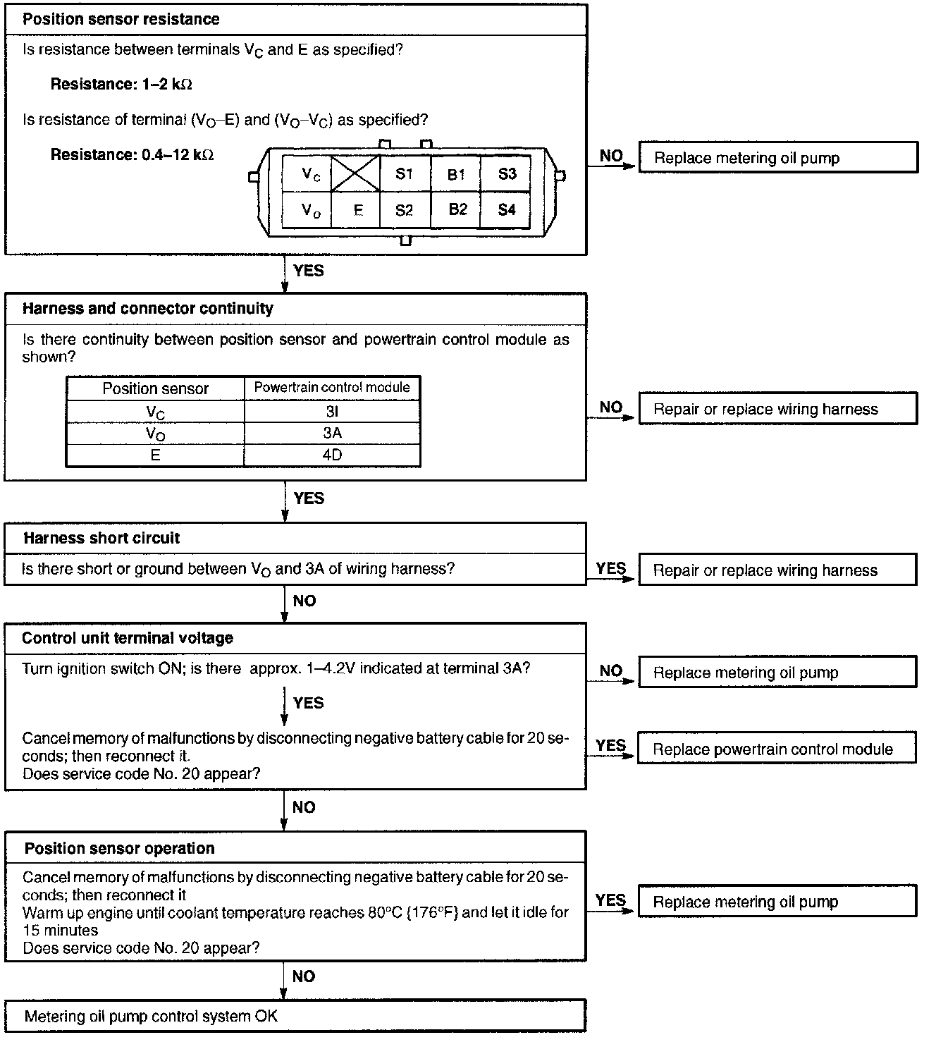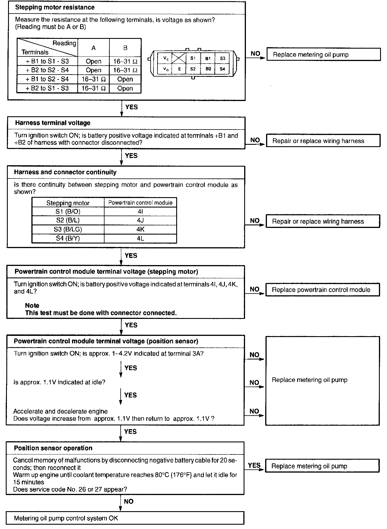 3. If code No. 20, 27 or 37 appears, check metering oil pump with diagnosis chart below.