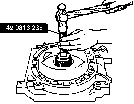 2. Using the main bearing replacer without adapter ring, press the main bearing out of the stationary gear.