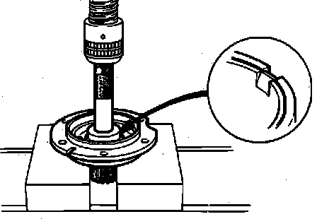 4. Press in the stationary gear to the front housing with the main bearing replacer, aligning the slot of the stationary gear flange and the dowel pin on the housing, as shown in Fig. 14.