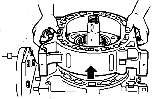 3. Lift the rear rotor housing away from the rotor, Fig. 6, being careful not to drop the apex seals on the rear rotor. Remove the two sealing rubbers and O-ring from the front side of the rear rotor housing. Discard the used sealing rubbers and O-ring, then use new sealing rubbers and O-ring.