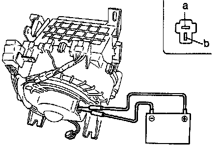 2. Verify that the blower motor runs when applying 12V to terminal a and grounding terminal b.