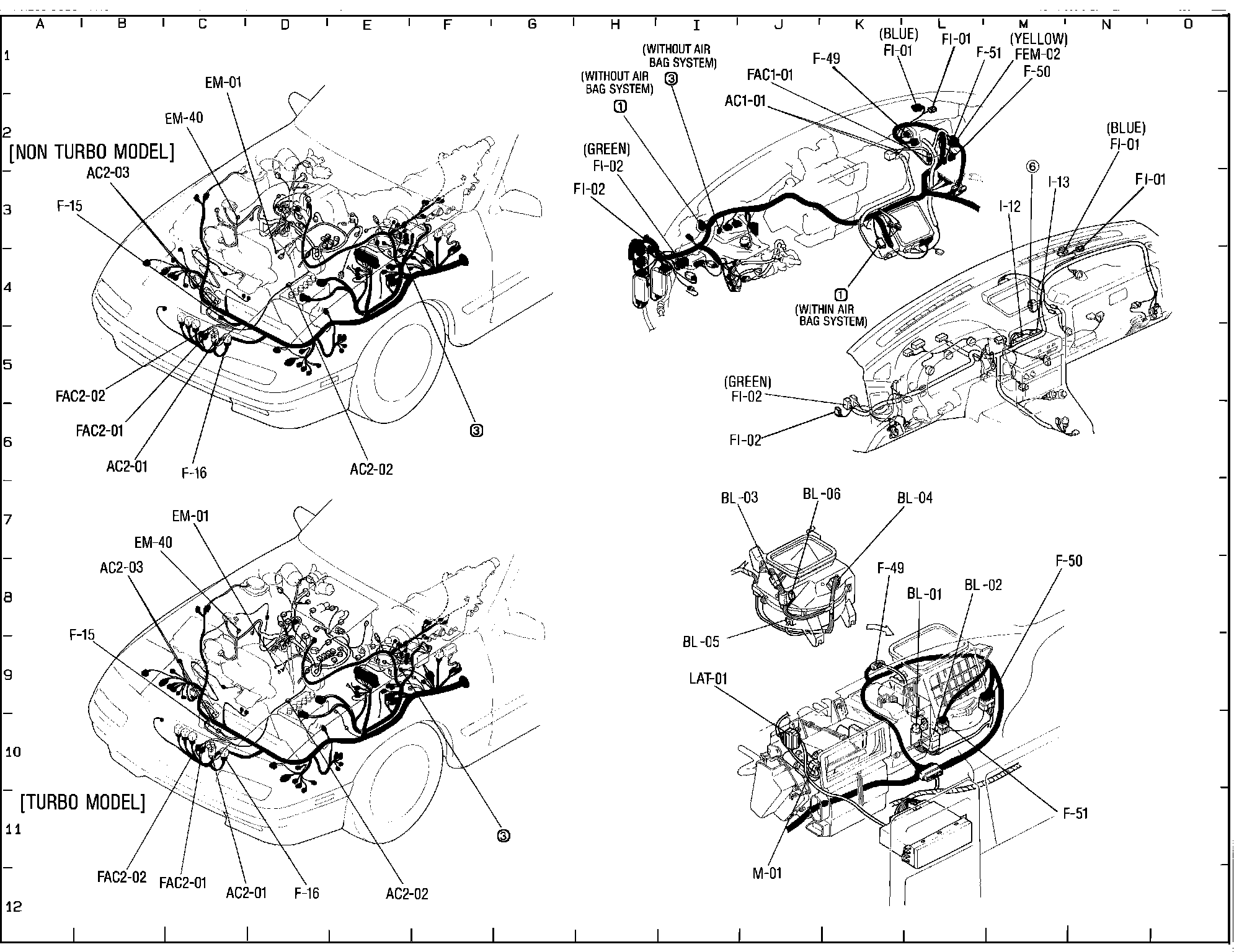 Heater, Air Conditioning & Electric Cooling Fan System. Harness Locations: