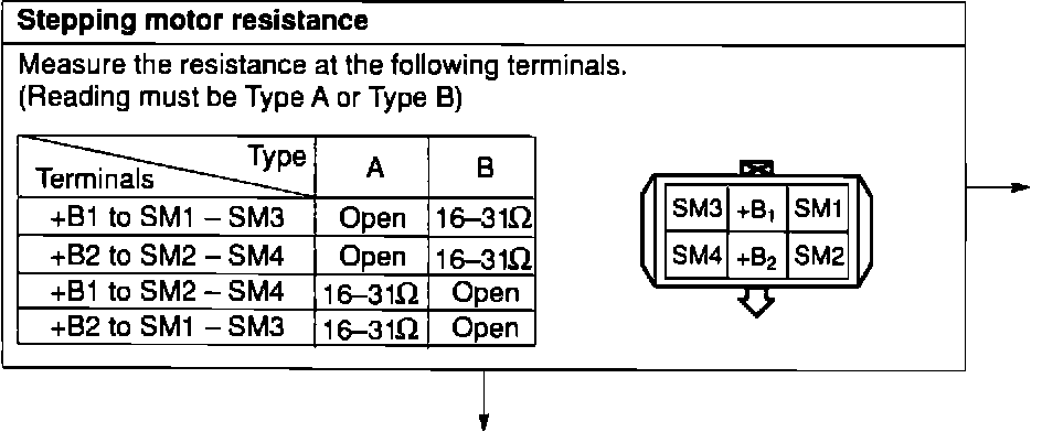 When checking the resistance for troubleshooting, resistance of either of the following two combinations (Type A, Type B) should be indicated. This will appear as a Workshop Manual Correction (Category AD, no. 011/90).