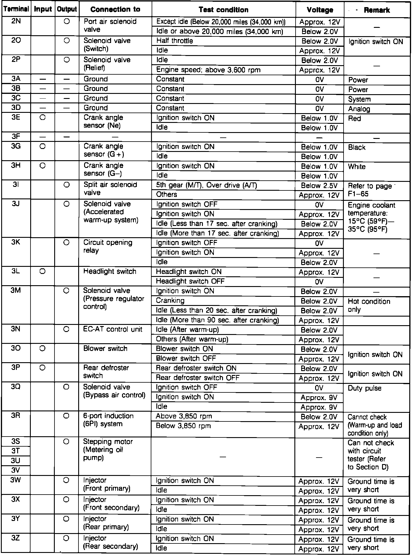 ECU Pin Voltage Chart (Part 2):